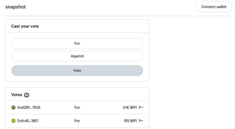 Our previous mechanism required a minimum of 1 BIFI to be held by the wallet trying to create a proposal. As voting power is now derived by a snapshot, they no longer have to keep the $BIFI in their wallet and can use staked $BIFI instead for their proposals.