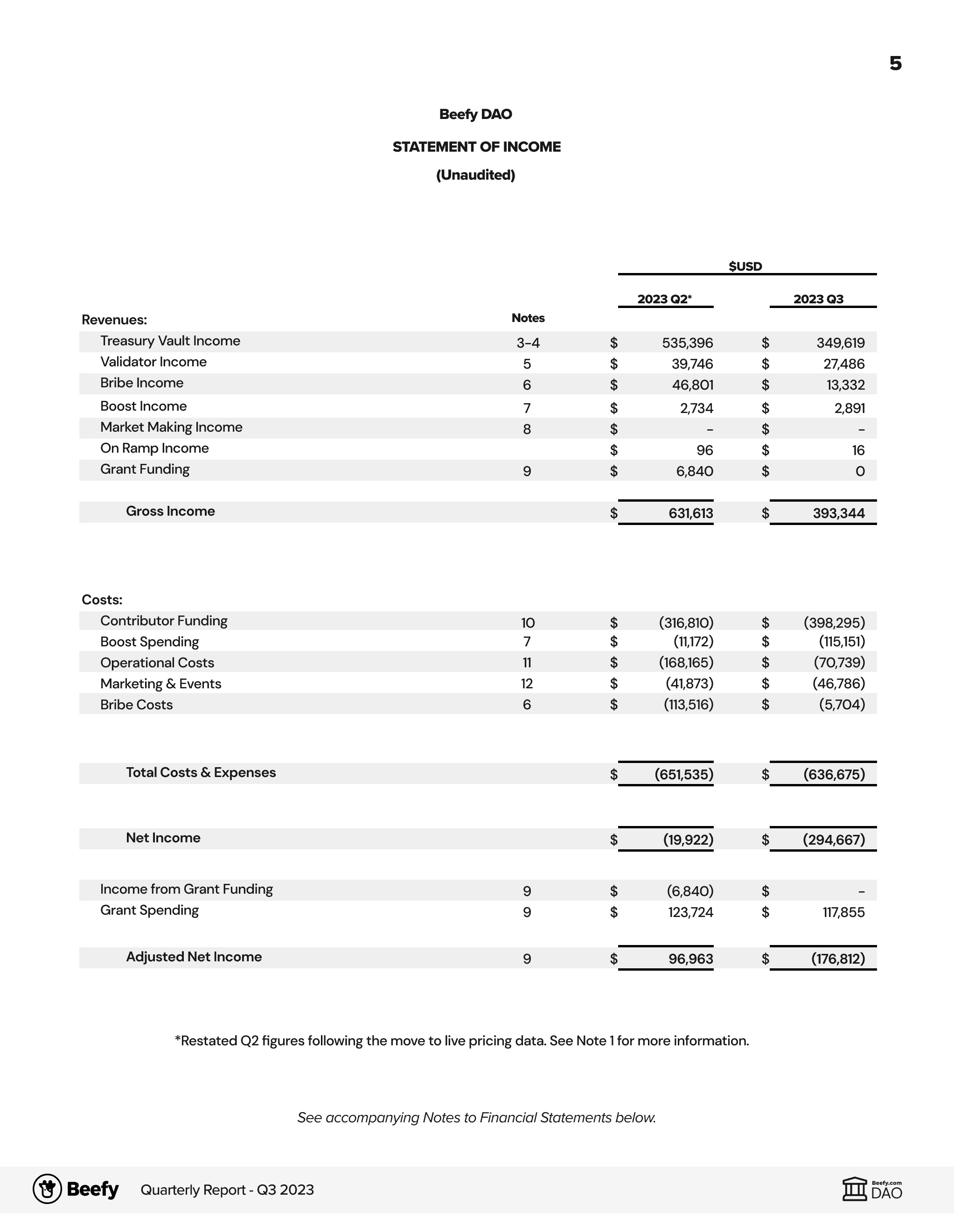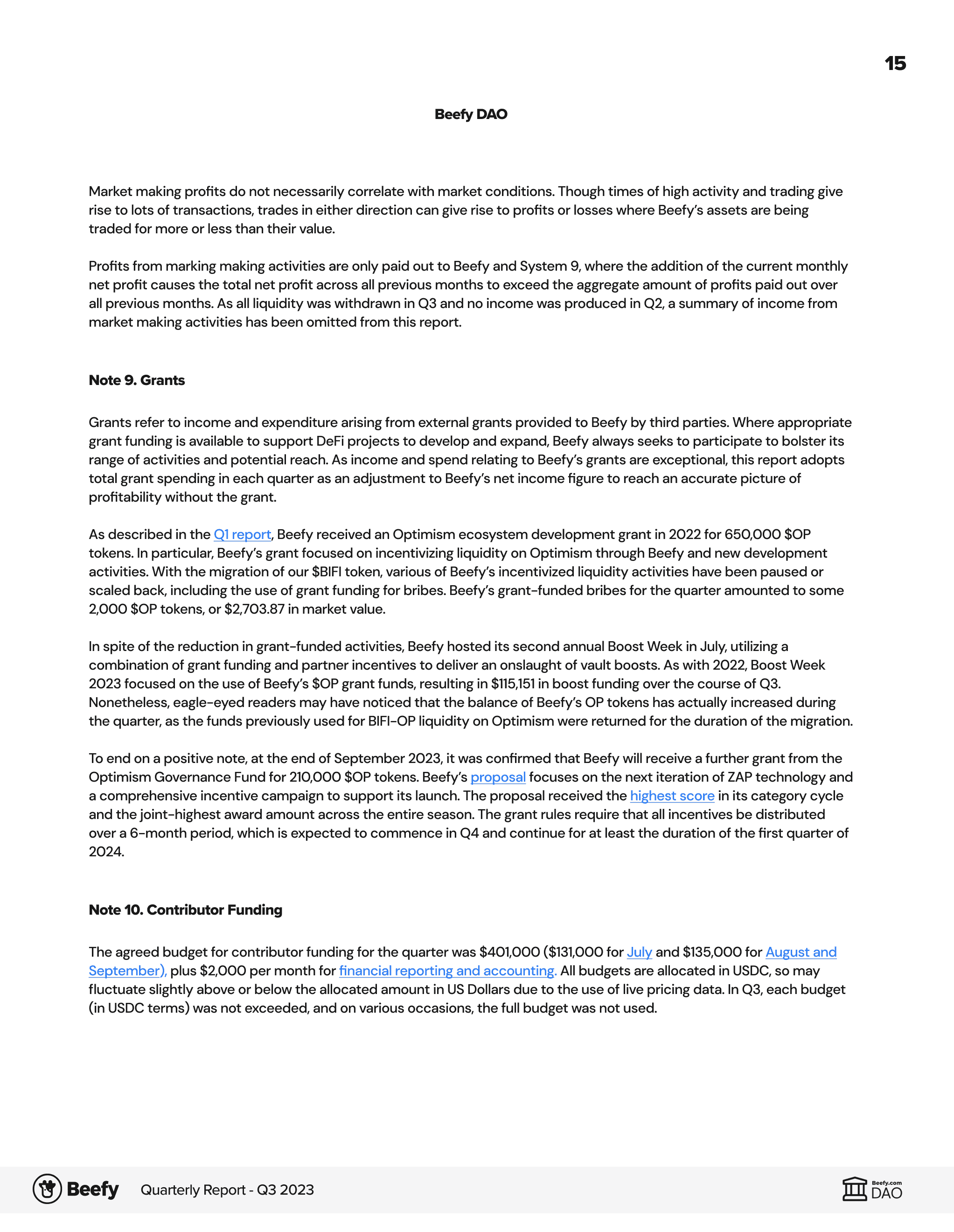 Quarterly Report Q3 2023