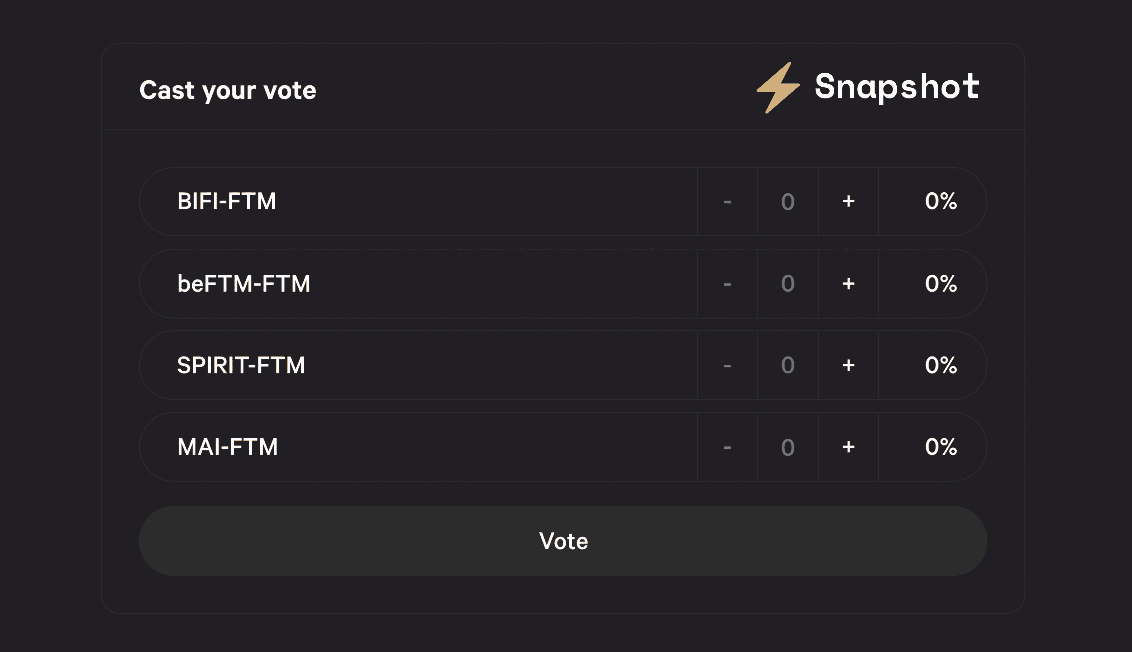 50% of Beefy’s voting rights from locking SPIRIT are given to binSPIRIT holders. We’ll distribute these rights and users will be able to vote once a week via Snapshot. Beefy will also create an open bribe environment for projects to bribe binSPIRIT holders for use of their voting power.